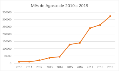 Comparativamente com os números de agosto desde 2010, o mês de agosto de 2019 é o melhor de sempre,